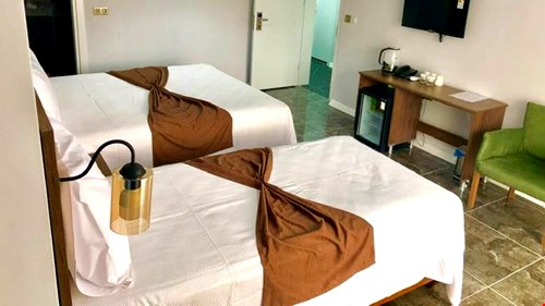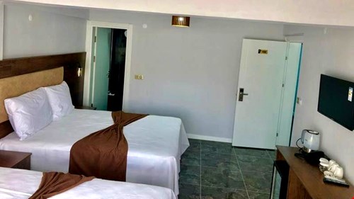 İçerisinde 1 çift kişilik ve 1 tek kişilik yatak bulunan alie odası. 25m2 büyüklüğünde, klimalı ve bahçe manzaralıdır.